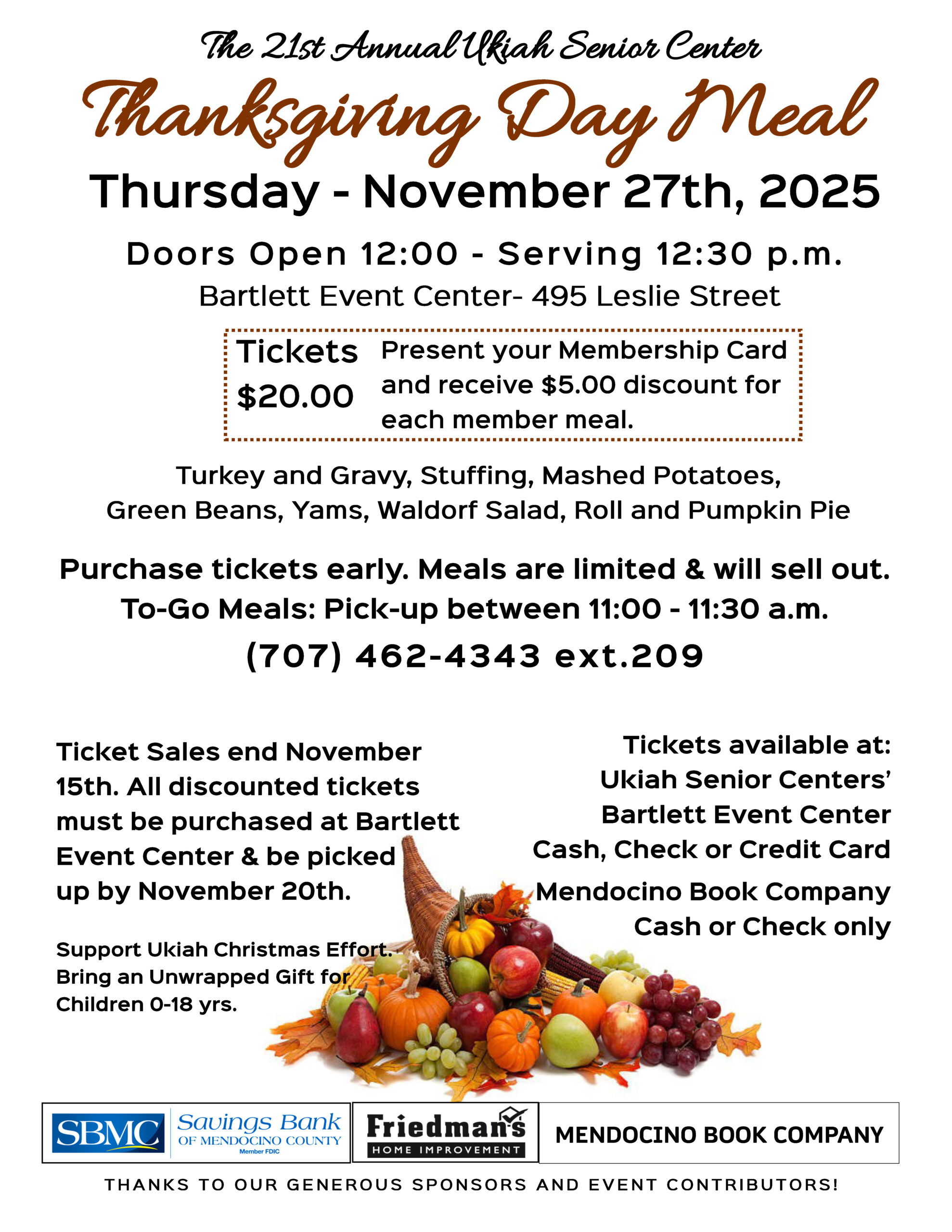 21st Annual Thanksgiving Day Meal at the Ukiah Senior Center