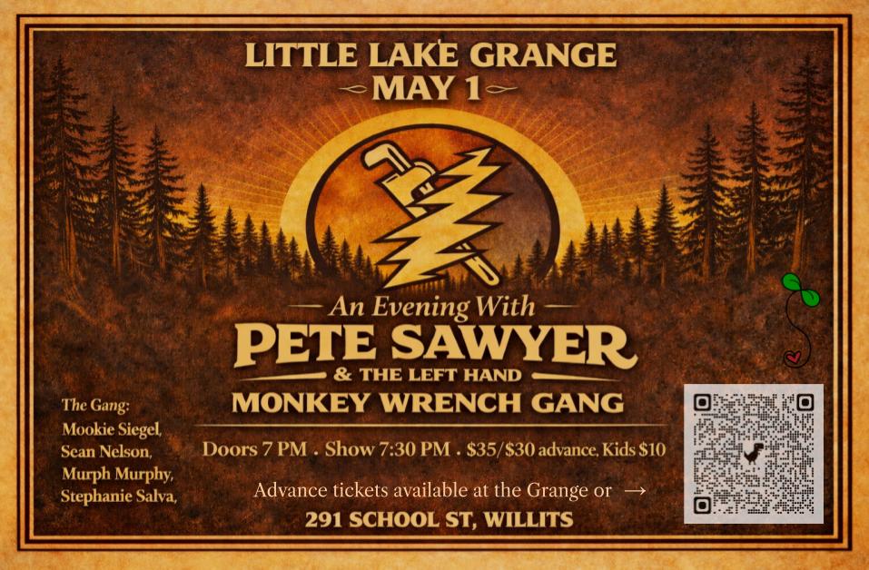 Join us live at the Little Lake Grange for an unforgettable in-person experience. Feel the energy, enjoy great tunes, and hang out with Pete Sawyer and The Gang as they bring their unique combinations of many of the foremost interpreters of Grateful Dead music. Pete and The Gang have taken Northern California by storm and they always deliver a well-curated exploration of the beloved Grateful Dead songbook! Grab your friends, show up, and be part of the fun!