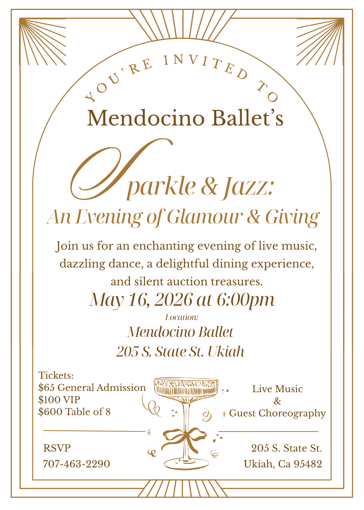 The evening will open with a jazz piece inspired by the era, featuring original choreography by Tyler Fosse, followed by an exclusive preview of our spring production, including excerpts from Paquita’s Grand Pas Classique.